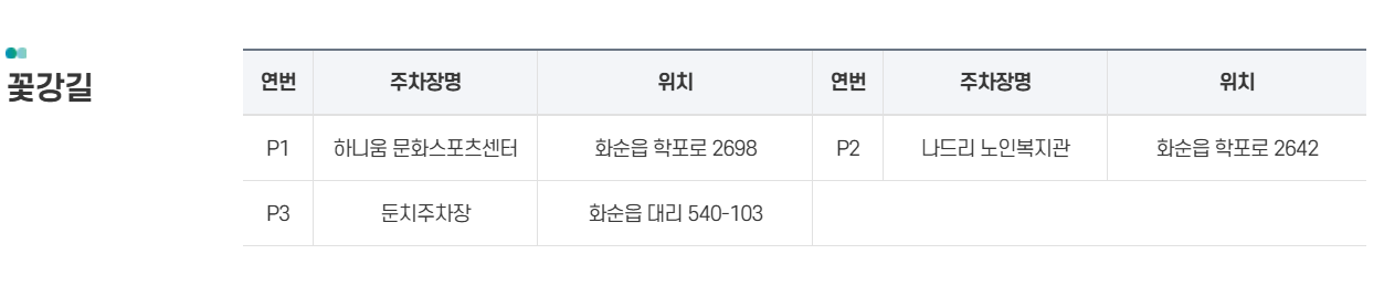 - 주차장 주소: 전남 화순군 화순읍 대리1길 16 (하니움 스포츠센터)