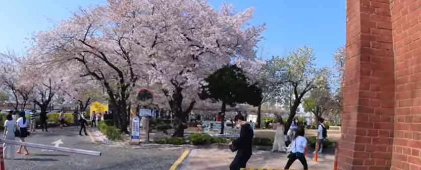 벚꽃이 적당히 어우러져 있어서 배경으로 사진 찍기 좋아요.