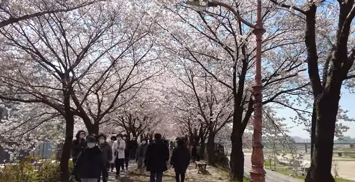 - 사진 포인트: 벚꽃 터널 중앙 직진샷, 강변 야경 뷰