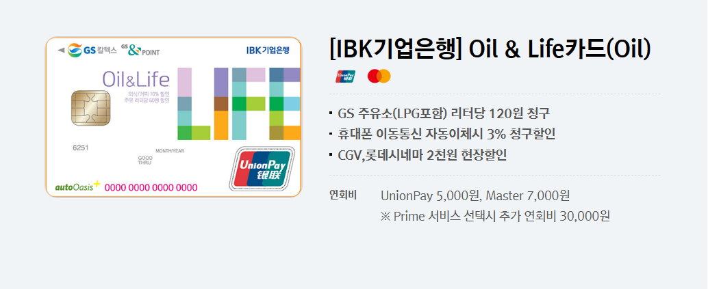 | 연회비 부담 줄이고 싶음 | IBK Oil&Life |