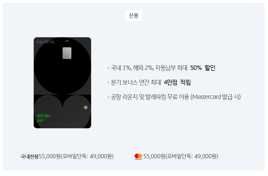 연회비 | 실물카드 55,000원 / 모바일 단독 49,000원 |